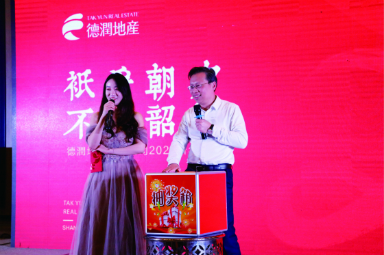 1 月 16 日,近 70 位德潤家人齊聚濟南荷悅酒店,參加主題為“只爭朝夕 不負韶華”的新年晚宴。晚宴在歡快的音樂中準時拉開帷幕,首先濟南區域公司董事長劉興海先生致感謝詞並宣佈晚宴開始。宴會上公司的俊男靚女們積極展示了自己才華橫溢的一面,朝氣蓬勃的舞蹈、慷慨激昂的朗誦和拍手叫絕的語言類搞笑節目等應有盡有。當然,抽獎互動環節也必不可少,晚宴現場歡呼聲此起彼伏,高潮迭起。