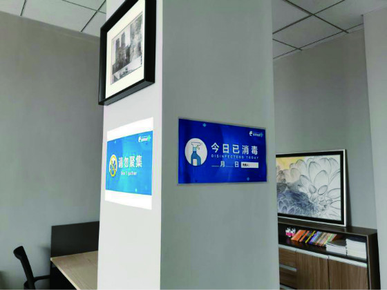 公司對辦公環境進行了全面消毒,印有疫情防護知識的溫馨提示隨處可見。行政部還為同事們提供了口罩、消毒劑等防護用品,落實錯時分餐制度,竭盡全力降低疫情對復工的影響。